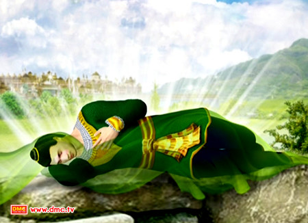 ภาพ มานพหนุ่มผู้มีบุญนอนพักอยู่ในสวนของพระราชา